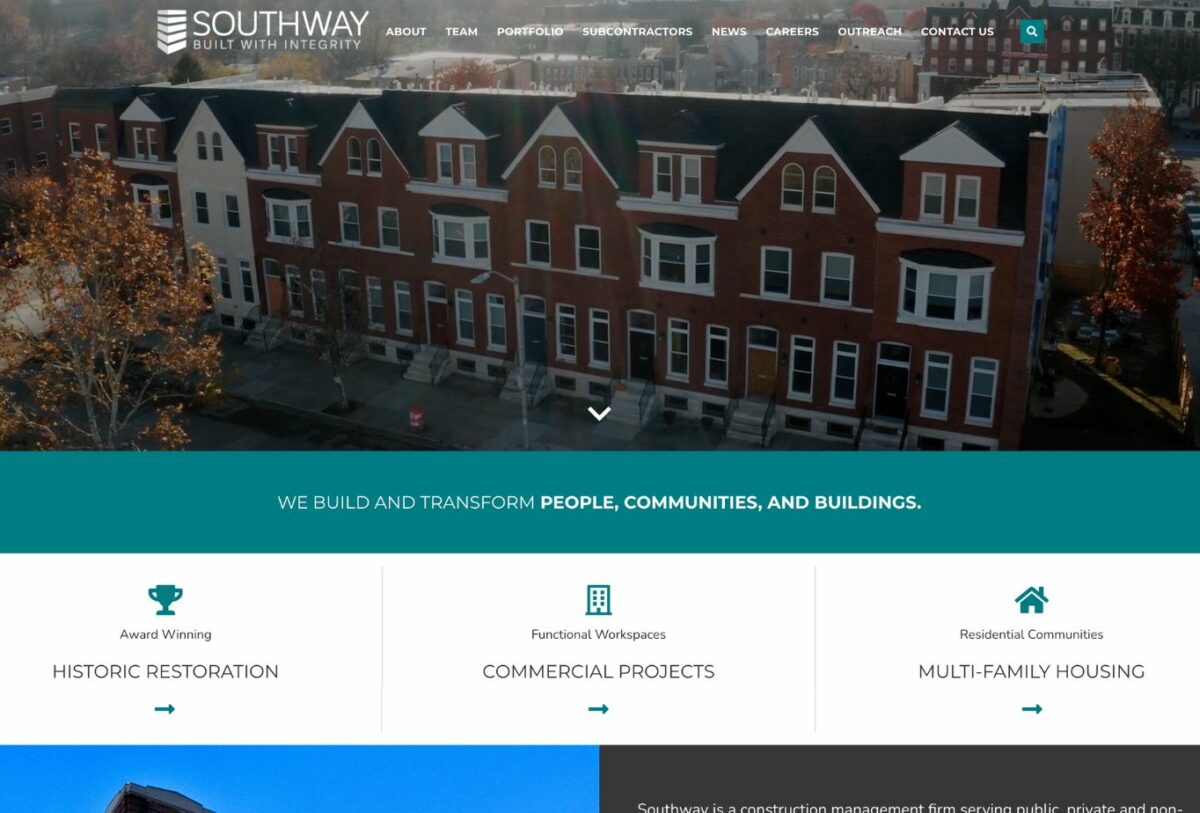The goal of the website redesign was to showcase the wide array of work that Southway does in the Baltimore Community.  It was intentionally built to allow for growth online as their physical team and space was growing as well.